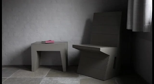 For this project, Sarah Van Marcke stayed at monasteries by Dutch monk and architect Dom Hans Van der Laan. The Benedictine monk and architect spent years searching for the essence of architecture. He worked steadily on a system of measures and proportions he eventually named ‘Plastic Number’. The ‘Plastic Number’ is a three-dimensional system based on an instinctive sense of small, medium and large. Height, width and depth of all components - windows, columns, walls and wall planes as well as the intervening spaces - are determined by this proportional system. Van der Laan’s extensive mathematical and objective approach leads to austere, balanced and very powerful buildings. Even the interiors and furniture are made in his mathematical state of mind and are free from all forms of decoration or fashionable trends. The spaces are almost ascetic, without details. Robust blocks and rough, unfinished concrete walls result in timeless spaces where visitors are invited to contemplate. In her images Sarah Van Marcke approaches the work of Van der Laan exactly from this point of view. The monumental and timeless spaces are emphasized by the balanced composition and the soft light Sarah uses. But what she adds are subtle movements, displacements within this rigorous architecture. The small actions captured by Sarah show her vision on the architect and his work. In an image of a balanced and massive architectural space, with a pair of black shoes standing next to a staircase Sarah plays with the omnipresent and extensive theory of Van der Laan, who literary designed everything in the monasteries, even the clothes of the inhabitants. Based on an existing portrait of Van de Laan Sarah plays with the suggestion of the presence of the deceased architect. With the same contradiction (presence versus absence) Sarah made different portraits of the architect while working or posing for a picture based on existing footage found in his archive. Caroline Voet, architect
